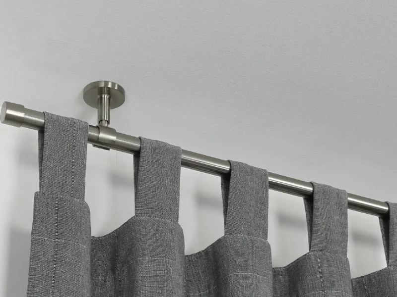Vorhangstangen nach Maß von Passendgenau lassen sich an der Wand oder der Decke montieren. Ob Sie zwei oder mehr Decken- bzw. Wandträger benötigen, hängt von der Länge Ihrer Vorhangstangen nach Maß ab. Die Befestigungsart "abgehängt" ist ideal für hohe Räume oder beim Einsatz von Vorhangstangen nach Maß als Raumteiler. Bei dieser Methode werden die Vorhangstangen nach Maß von Passendgenau mit längeren Streben an der Zimmerdecke befestigt. Soll sich die Vorhangstange von Wand zu Wand erstrecken, kommen Wandlager, die im Lieferumfang enthalten sind, zum Einsatz.