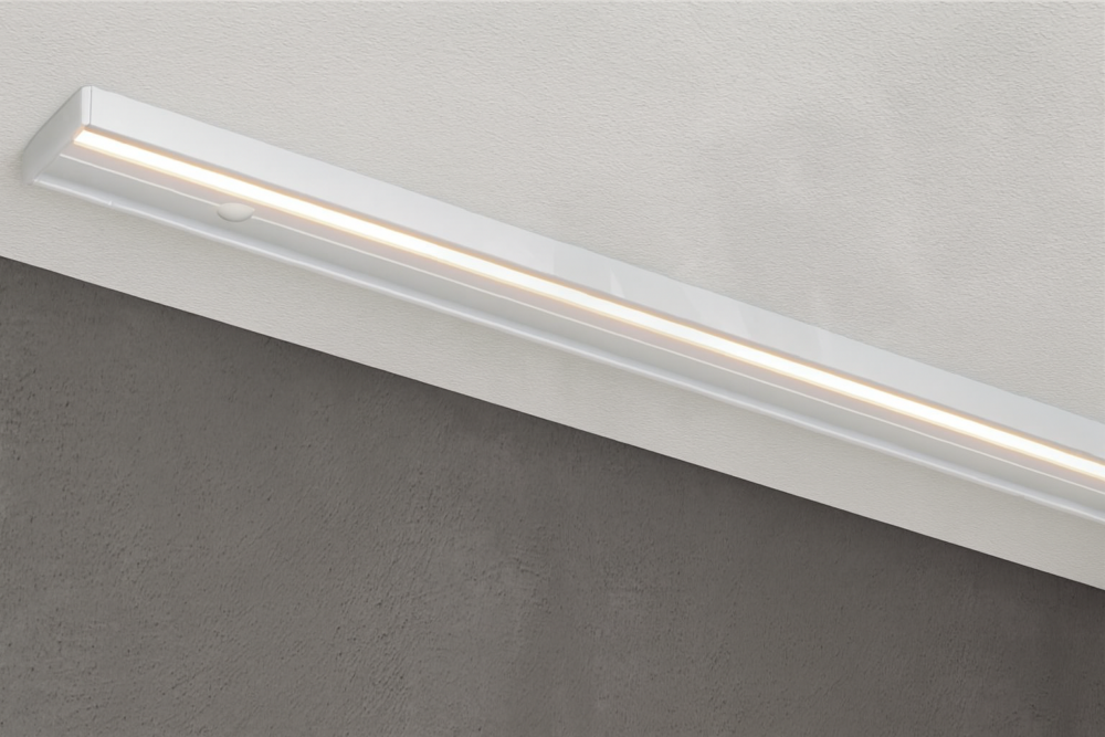 Die LED-Gardinenschiene Modell 880 ist eine 2-läufige Lösung für Räume, in denen Vorhangführung und Beleuchtung kombiniert werden sollen.